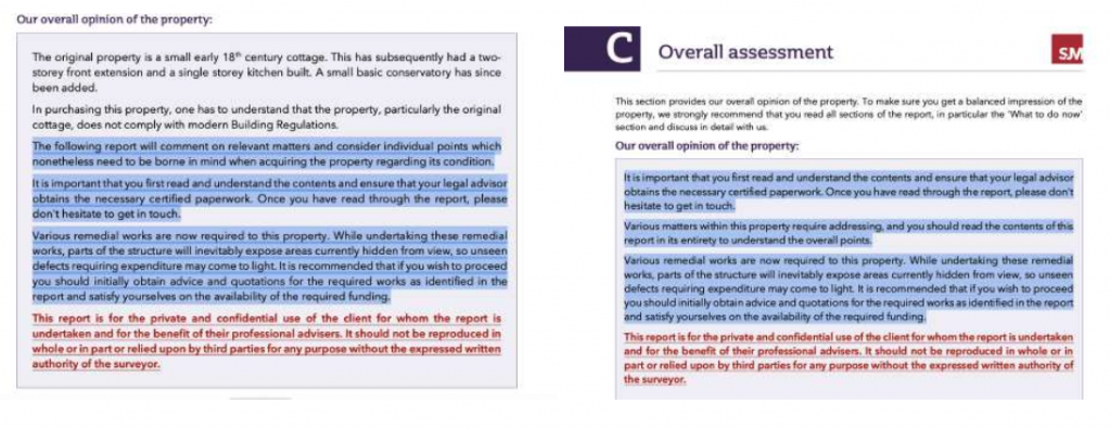 ● ‘Opinion of the property’ section was actually copied and pasted from another SJM Surveyors survey. Richard Massie sees no problem in this.